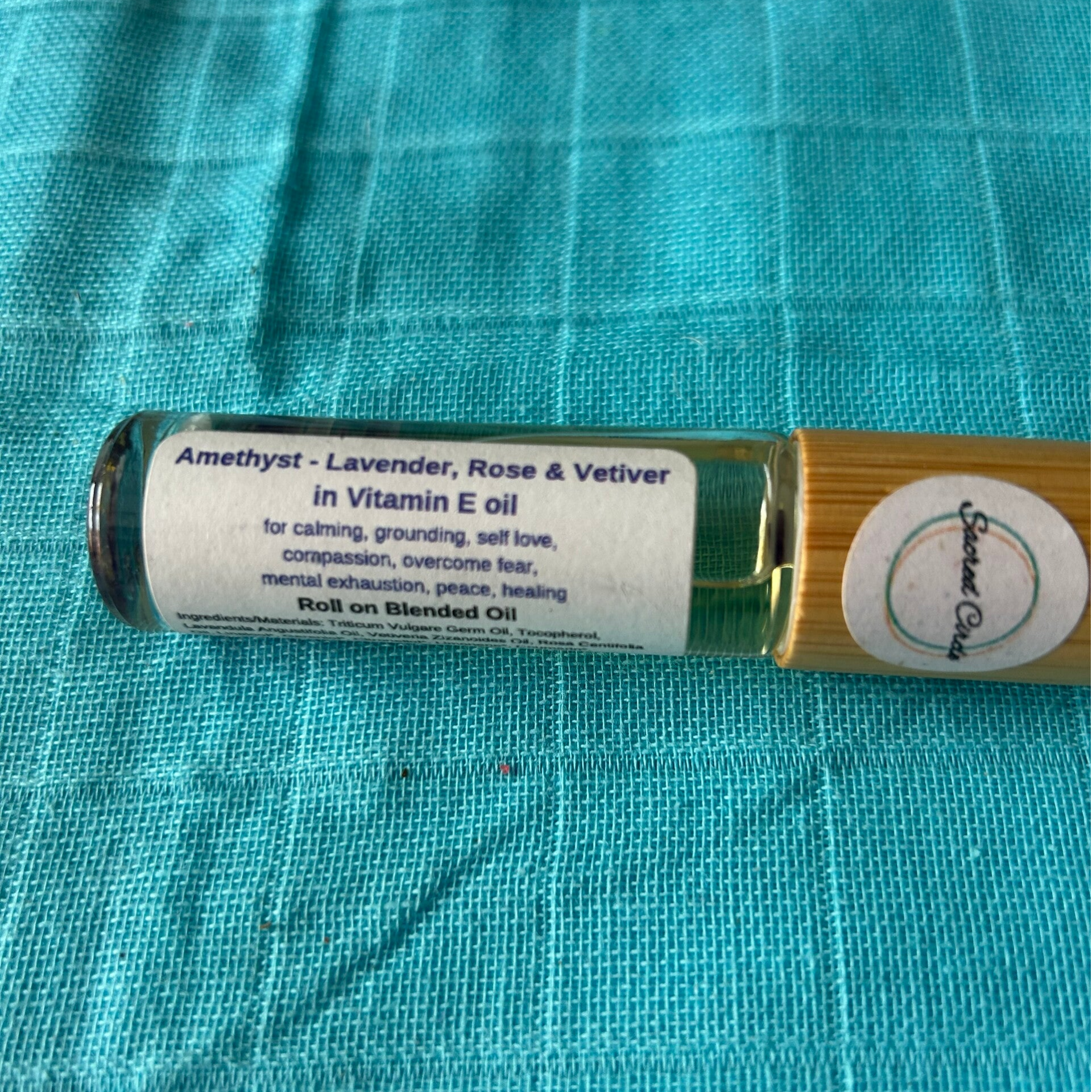 Amethyst crystals combined with lavender, rose & vetiver essential oils.