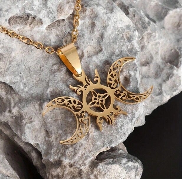 Ornate Triple Moon Necklace Gold